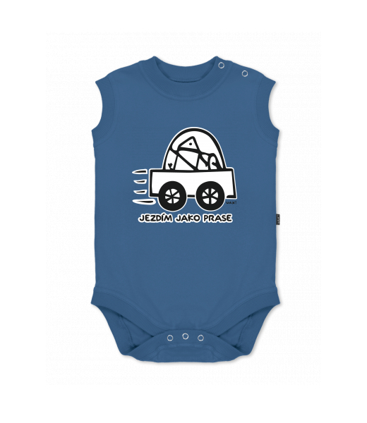 We make sustainable UAX clothing! - hand sewn in the Czech Republic uaxKids uaxAll productsBaby bodyBABY BODY SLEEVELESSdesign 1072 - JEZDÍM JAKO PRASEMOONLIGHT BLUE