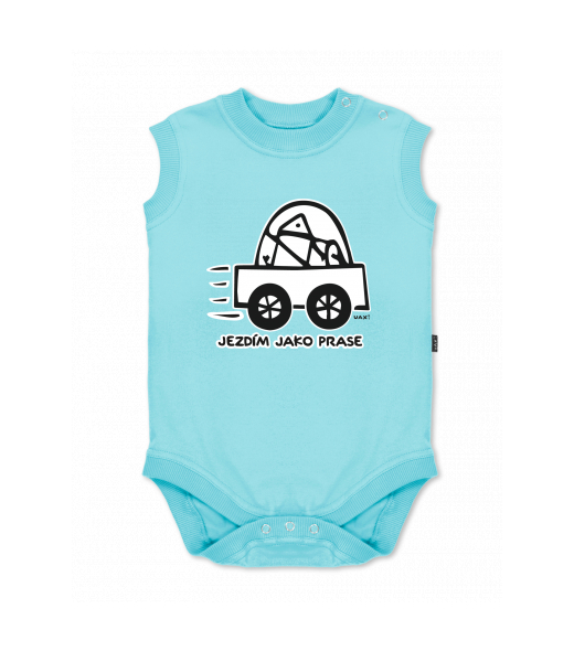 We make sustainable UAX clothing! - hand sewn in the Czech Republic uaxKids uaxAll productsBaby bodyBABY BODY SLEEVELESSdesign 1072 - JEZDÍM JAKO PRASEPASTEL BLUE