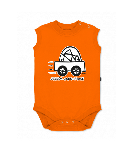 We make sustainable UAX clothing! - hand sewn in the Czech Republic uaxKids uaxAll productsBaby bodyBABY BODY SLEEVELESSdesign 1072 - JEZDÍM JAKO PRASESIGNAL ORANGE