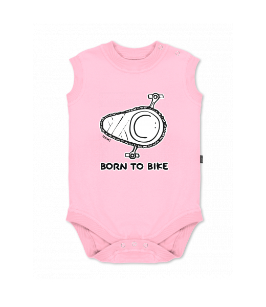 Baby body sleeveless with design for kid with design 1074 BORN TO BIKE in color BABY PINK