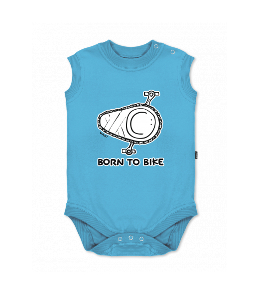 Baby body sleeveless with design for kid with design 1074 BORN TO BIKE in color BLUE ATOLL