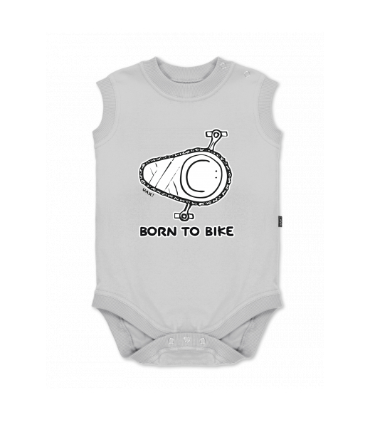 Baby body sleeveless with design for kid with design 1074 BORN TO BIKE in color CEMENT