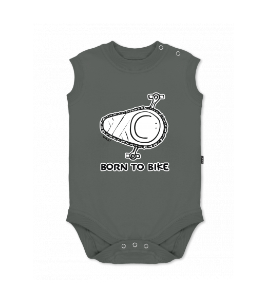 Baby body sleeveless with design for kid with design 1074 BORN TO BIKE in color DARK GRAY