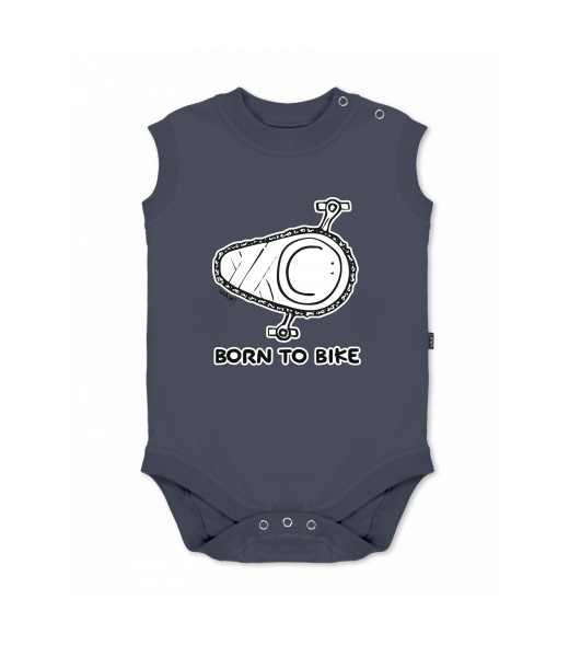 Baby body sleeveless with design for kid with design 1074 BORN TO BIKE in color GRAY INK