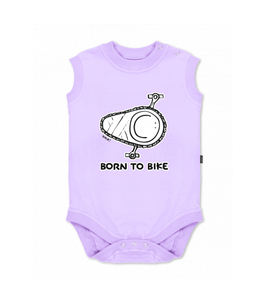 Baby body sleeveless with design for kid with design 1074 BORN TO BIKE in color LAVENDER