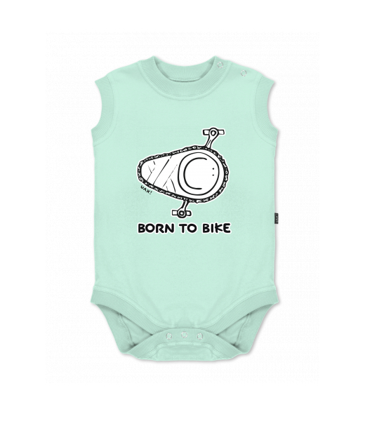 Baby body sleeveless with design for kid with design 1074 BORN TO BIKE in color MINT