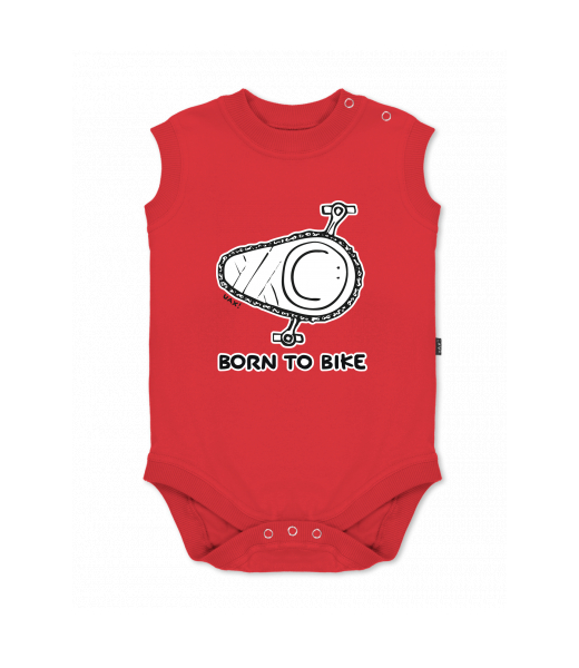 Baby body sleeveless with design for kid with design 1074 BORN TO BIKE in color RED