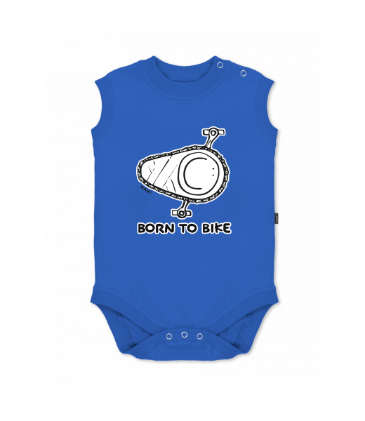 Baby body sleeveless with design for kid with design 1074 BORN TO BIKE in color ROYAL BLUE