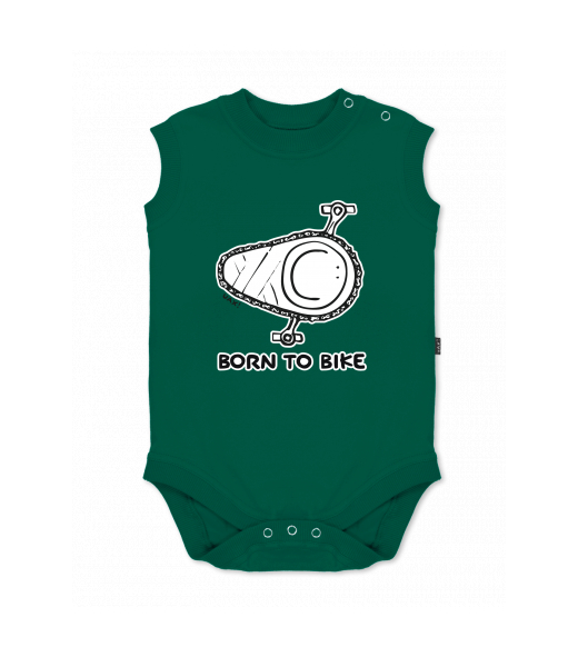 Baby body sleeveless with design for kid with design 1074 BORN TO BIKE in color UNIVERSITY GREEN
