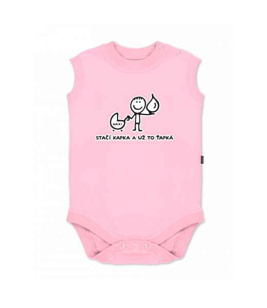 Baby body sleeveless with design for kid with design 1081 STAČÍ KAPKA A UŽ TO ŤAPKÁ in color BABY PINK