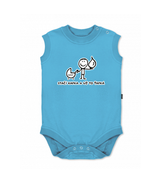 Baby body sleeveless with design for kid with design 1081 STAČÍ KAPKA A UŽ TO ŤAPKÁ in color BLUE ATOLL