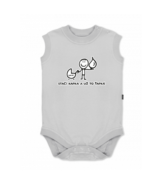 Baby body sleeveless with design for kid with design 1081 STAČÍ KAPKA A UŽ TO ŤAPKÁ in color CEMENT