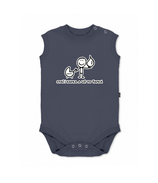 Baby body sleeveless with design for kid with design 1081 STAČÍ KAPKA A UŽ TO ŤAPKÁ in color GRAY INK