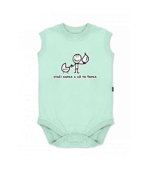 Baby body sleeveless with design for kid with design 1081 STAČÍ KAPKA A UŽ TO ŤAPKÁ in color MINT