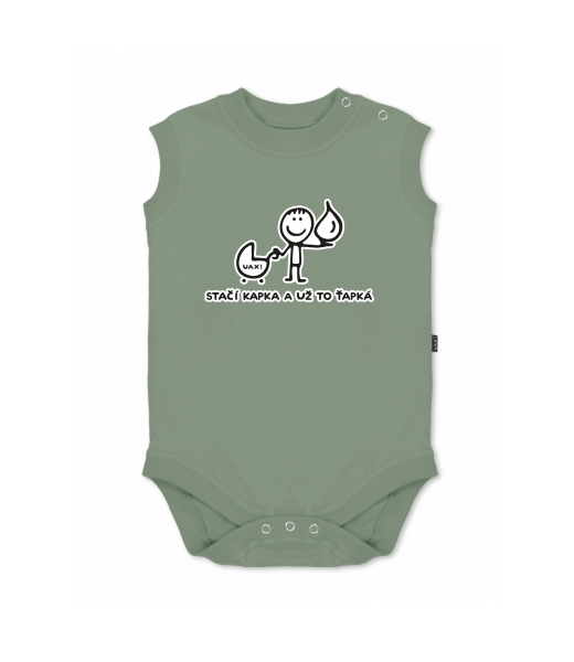 Baby body sleeveless with design for kid with design 1081 STAČÍ KAPKA A UŽ TO ŤAPKÁ in color OLIVA