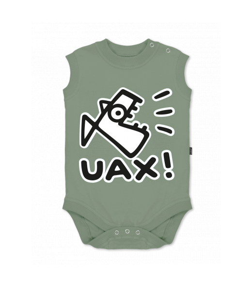 Baby body sleeveless with design for kid with design 1086 LOGO UAX! in color OLIVA