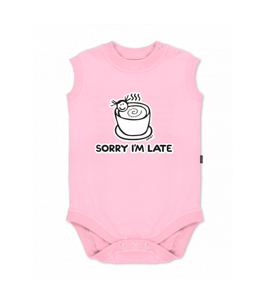 Baby body sleeveless with design for kid with design 1087 SORRY IM LATE in color BABY PINK