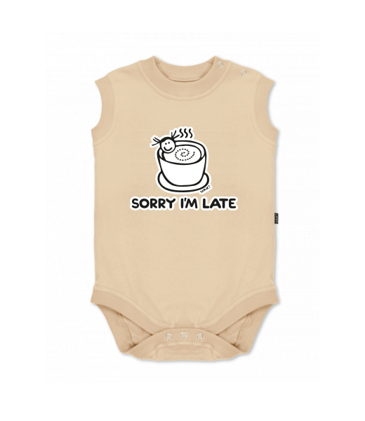 Baby body sleeveless with design for kid with design 1087 SORRY IM LATE in color CARAMEL