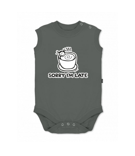 Baby body sleeveless with design for kid with design 1087 SORRY IM LATE in color DARK GRAY