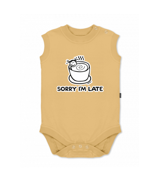 Baby body sleeveless with design for kid with design 1087 SORRY IM LATE in color MUSTARD