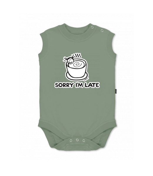 Baby body sleeveless with design for kid with design 1087 SORRY IM LATE in color OLIVA