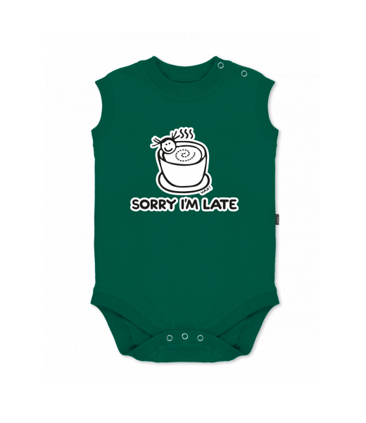 Baby body sleeveless with design for kid with design 1087 SORRY IM LATE in color UNIVERSITY GREEN