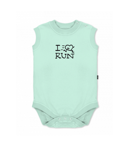 Baby body sleeveless with design for kid with design 1088 I LOVE RUN in color MINT