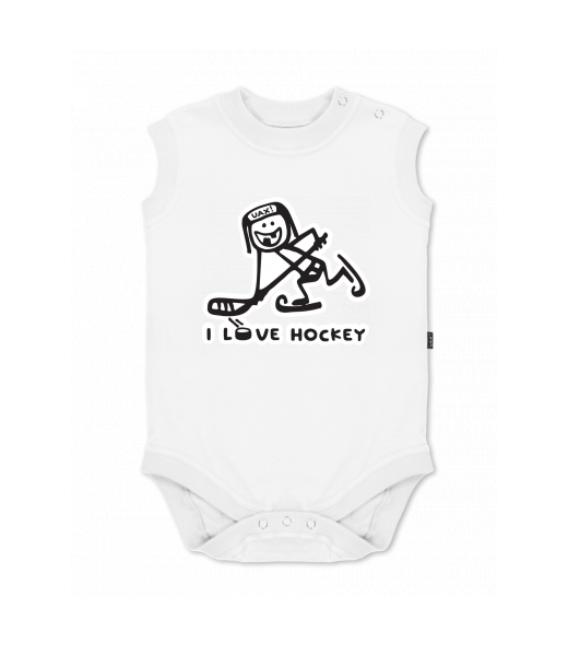 Baby body sleeveless with design for kid with design 1100 I LOVE HOCKEY in color WHITE