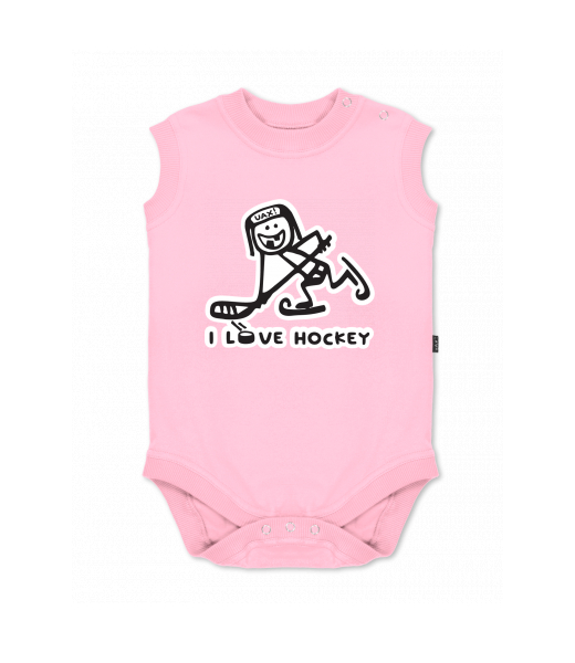 Baby body sleeveless with design for kid with design 1100 I LOVE HOCKEY in color BABY PINK