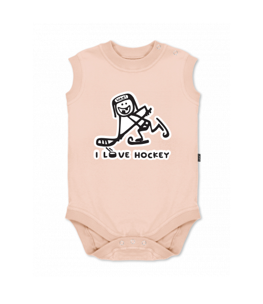 Baby body sleeveless with design for kid with design 1100 I LOVE HOCKEY in color CAPPUCINO