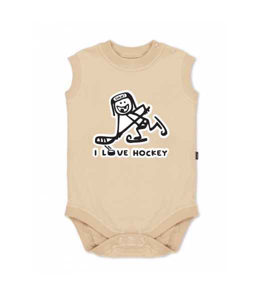 Baby body sleeveless with design for kid with design 1100 I LOVE HOCKEY in color CARAMEL