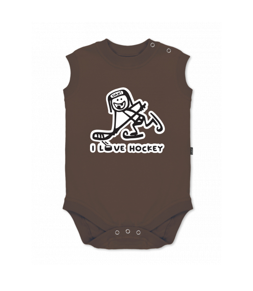 Baby body sleeveless with design for kid with design 1100 I LOVE HOCKEY in color CHESTNUT