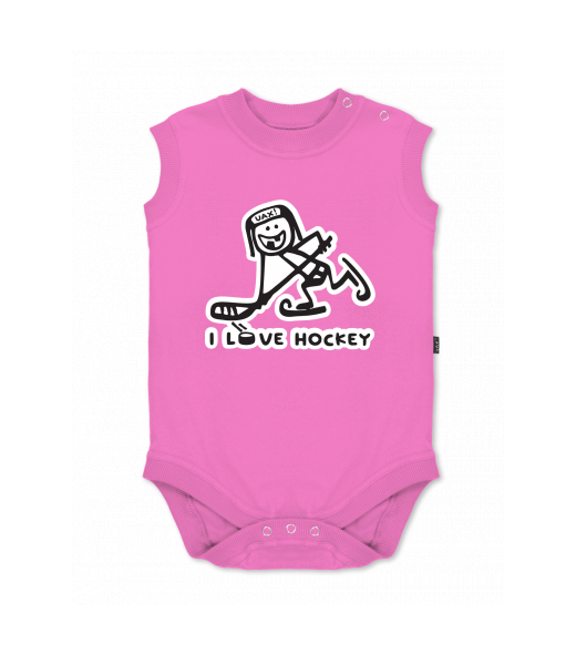 Baby body sleeveless with design for kid with design 1100 I LOVE HOCKEY in color CLASSIC PINK