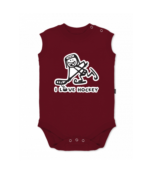 Baby body sleeveless with design for kid with design 1100 I LOVE HOCKEY in color DARK RED