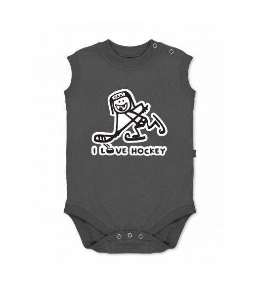 Baby body sleeveless with design for kid with design 1100 I LOVE HOCKEY in color GRAFIT
