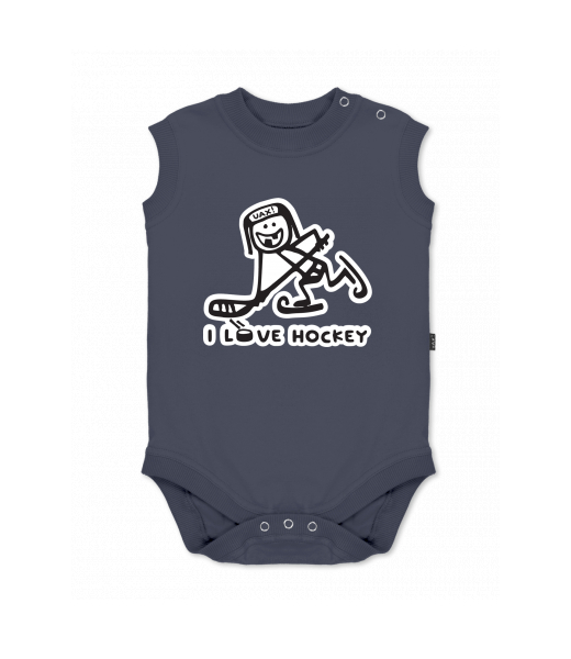 Baby body sleeveless with design for kid with design 1100 I LOVE HOCKEY in color GRAY INK