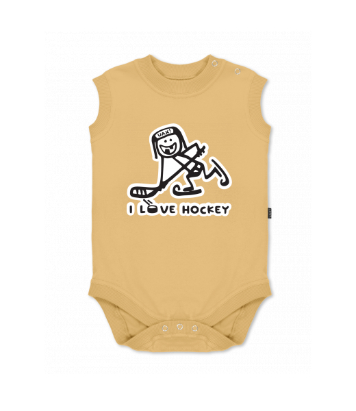 Baby body sleeveless with design for kid with design 1100 I LOVE HOCKEY in color MUSTARD