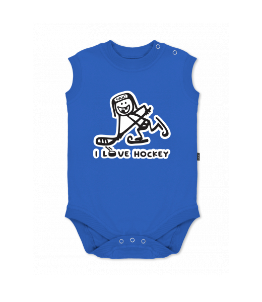 Baby body sleeveless with design for kid with design 1100 I LOVE HOCKEY in color ROYAL BLUE