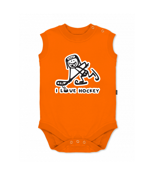 Baby body sleeveless with design for kid with design 1100 I LOVE HOCKEY in color SIGNAL ORANGE