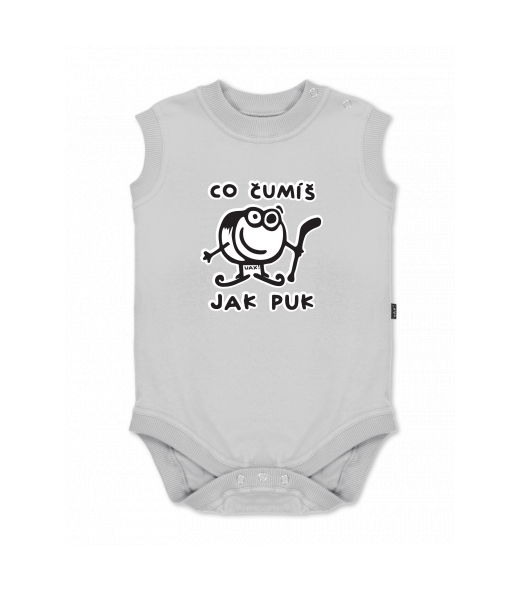 Baby body sleeveless with design for kid with design 1101 ČUMÍŠ JAK PUK in color CEMENT