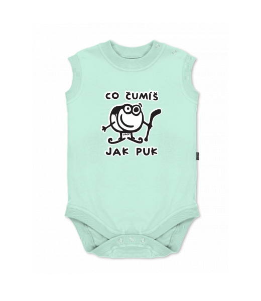 Baby body sleeveless with design for kid with design 1101 ČUMÍŠ JAK PUK in color MINT