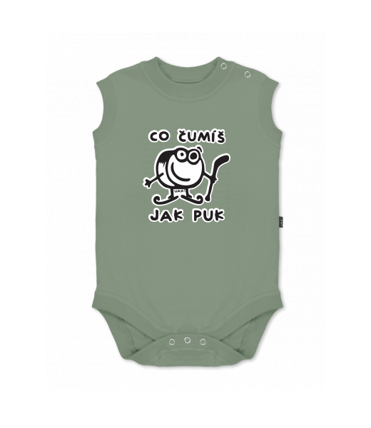 Baby body sleeveless with design for kid with design 1101 ČUMÍŠ JAK PUK in color OLIVA
