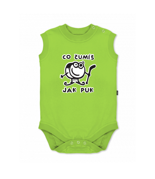 Baby body sleeveless with design for kid with design 1101 ČUMÍŠ JAK PUK in color PARROT GREEN
