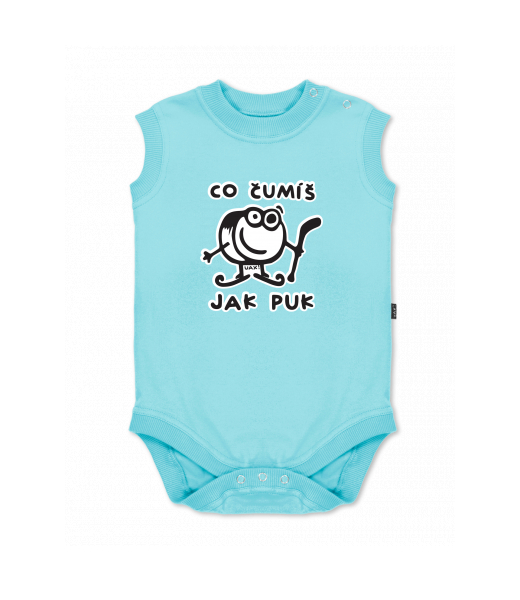 Baby body sleeveless with design for kid with design 1101 ČUMÍŠ JAK PUK in color PASTEL BLUE