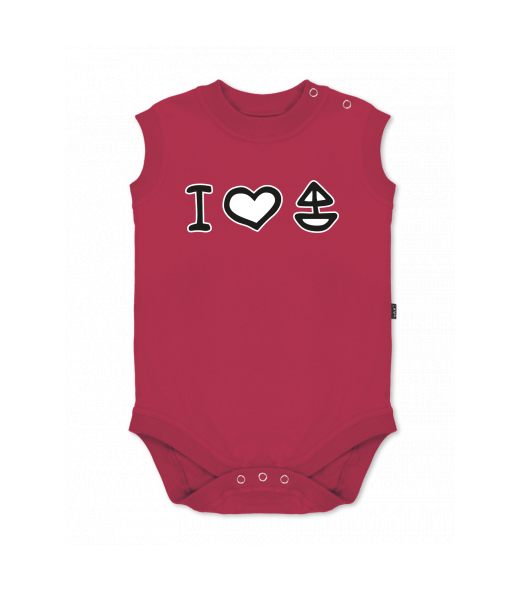Baby body sleeveless with design for kid with design 1102 I LOVE YACHTING in color CHILLY PEPPER RED