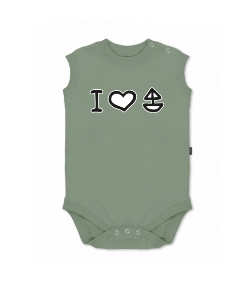 Baby body sleeveless with design for kid with design 1102 I LOVE YACHTING in color OLIVA