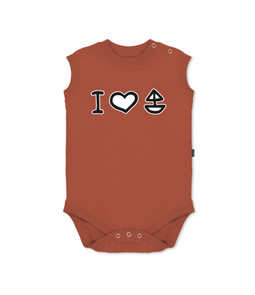 Baby body sleeveless with design for kid with design 1102 I LOVE YACHTING in color TERRA