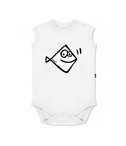 Baby body sleeveless with design for kid with design 1111 PIRANHA in color WHITE