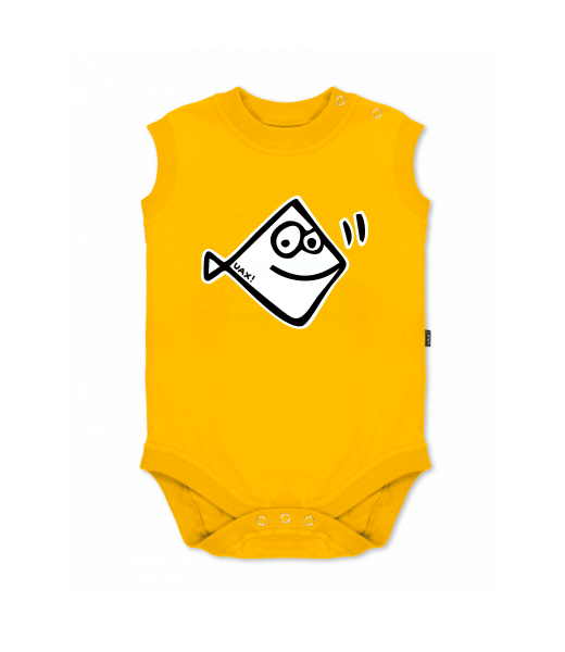 We make sustainable UAX clothing! - hand sewn in the Czech Republic uaxKids uaxAll productsBaby bodyBABY BODY SLEEVELESSdesign 1111 - PIRANHAGOLDEN CREAM