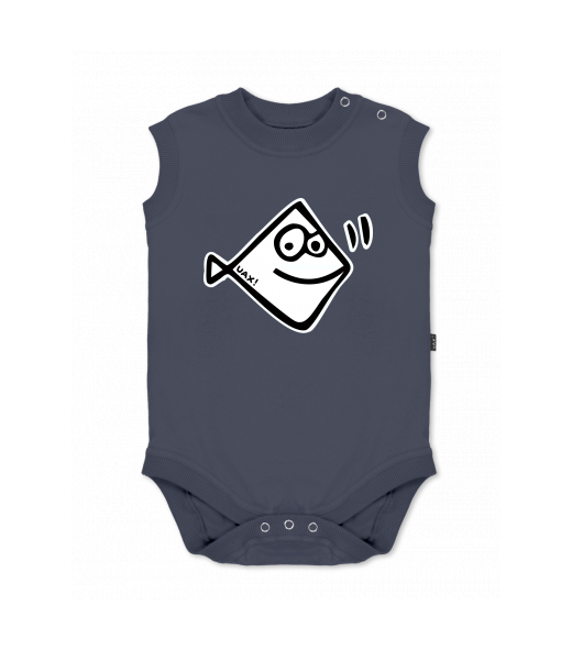 Baby body sleeveless with design for kid with design 1111 PIRANHA in color GRAY INK
